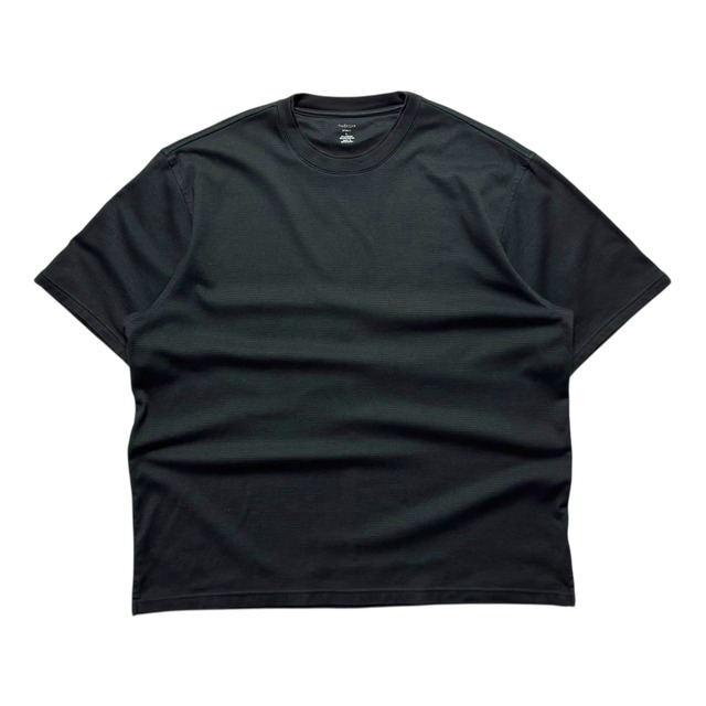 size : L(fit like XL) color : black material : cotton / polyester ヴァンヒューゼンの無地T。細かい格子状の織り柄、襟・袖が二重のダブルフェイス仕様。気が利いてます。一捻りあるTシャツをお探しの方は是非。 ----- 着丈 69.5cm 身幅 62cm 肩幅 52.5cm 袖丈 25cm ※全て背面で計測しています 汚れ:無 ダメージ:無 ※古着の商品になります。状態に神経質なお客様に関しましては、ご利用をご遠慮願います様お願い申し上げます。お客様ご都合での返品は一切受け付けていません。