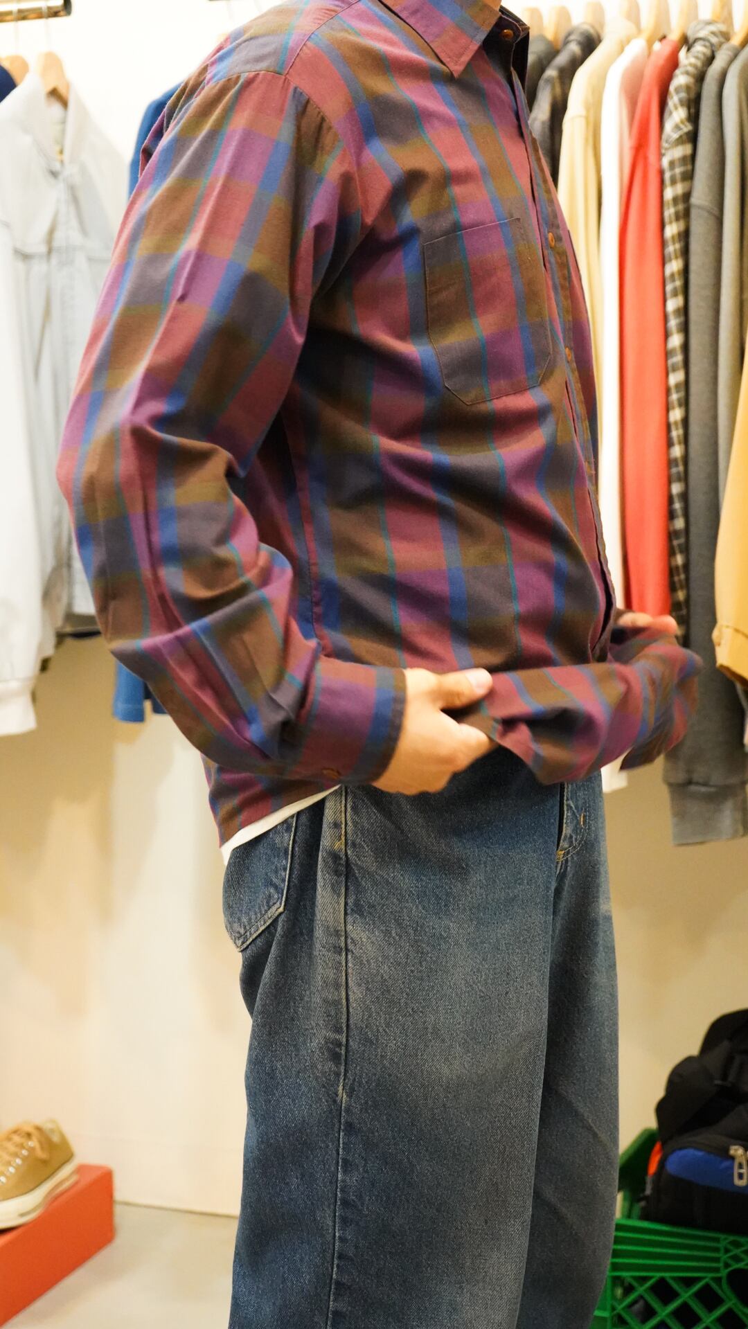 アローの80年代のチェックシャツ。ポリ×コットンのサラッとした生地で、ボックスカット。良いです。春秋に活躍するかと。