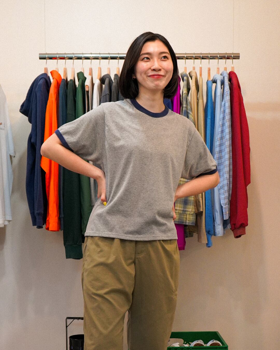 ジャージーズの無地リンガーT。当店で着丈を調整し、ボクシーなシルエットに仕上げました。夏のお供に是非。
