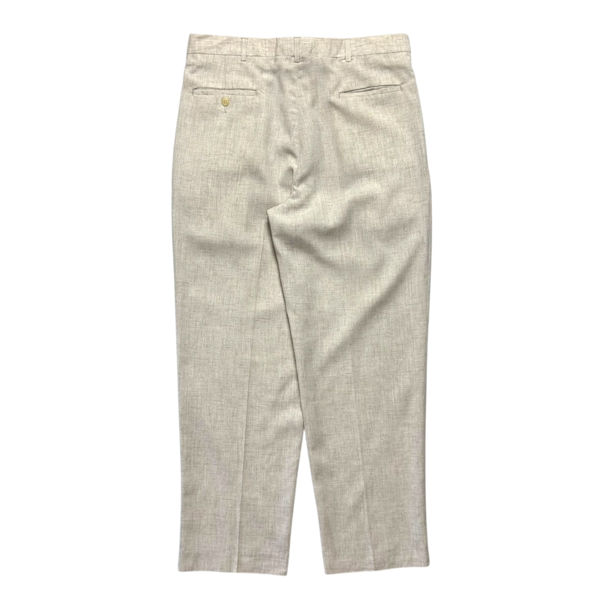 ファーラーのレーヨンフラックスパンツ。当時の未使用品(新品)です。2タック、カスリ柄、シワ&汚れ防止加工、ポリ×レーヨン×フラックス(麻)の混紡生地。最高です。夏場でもかなり快適に着用頂けるかと。オススメです。