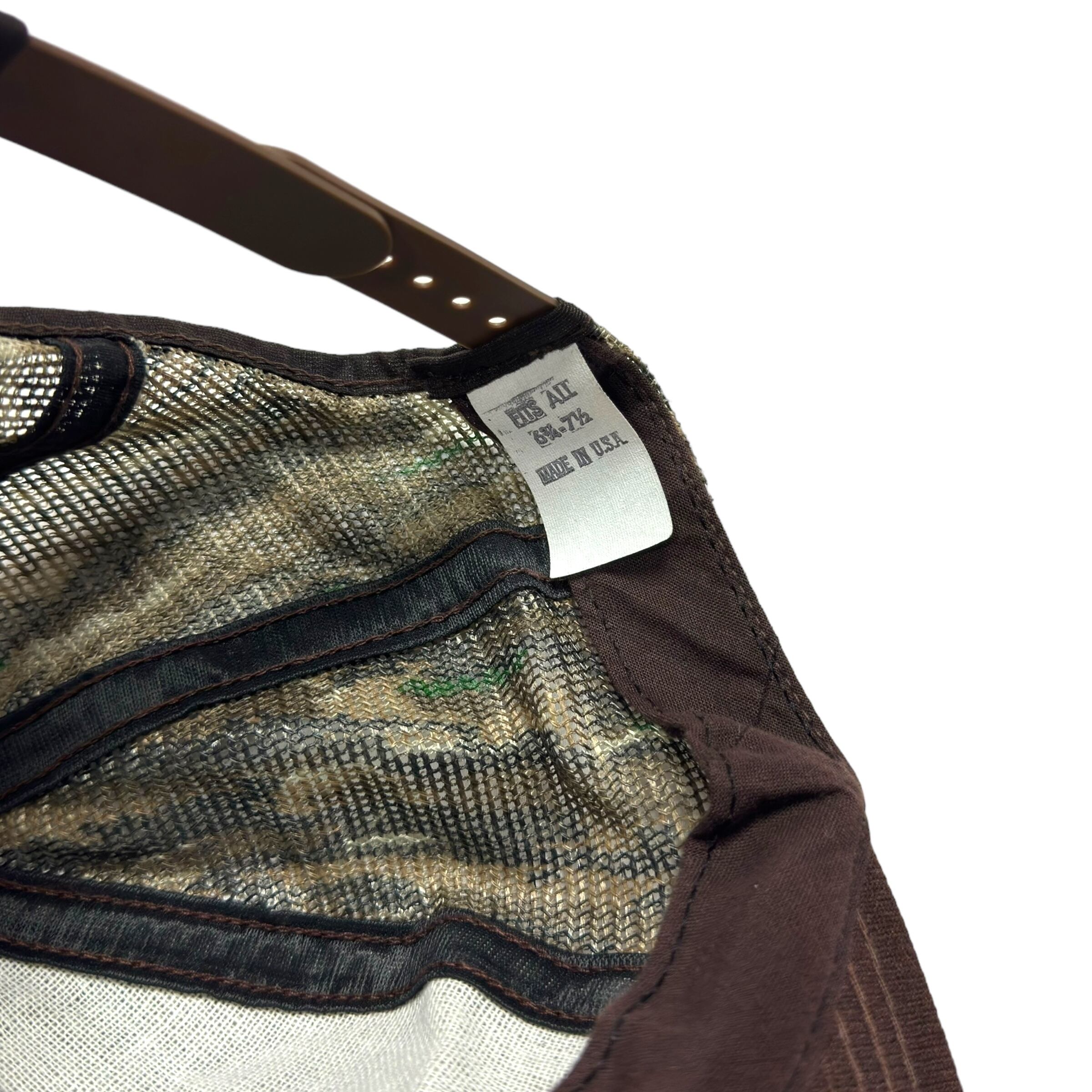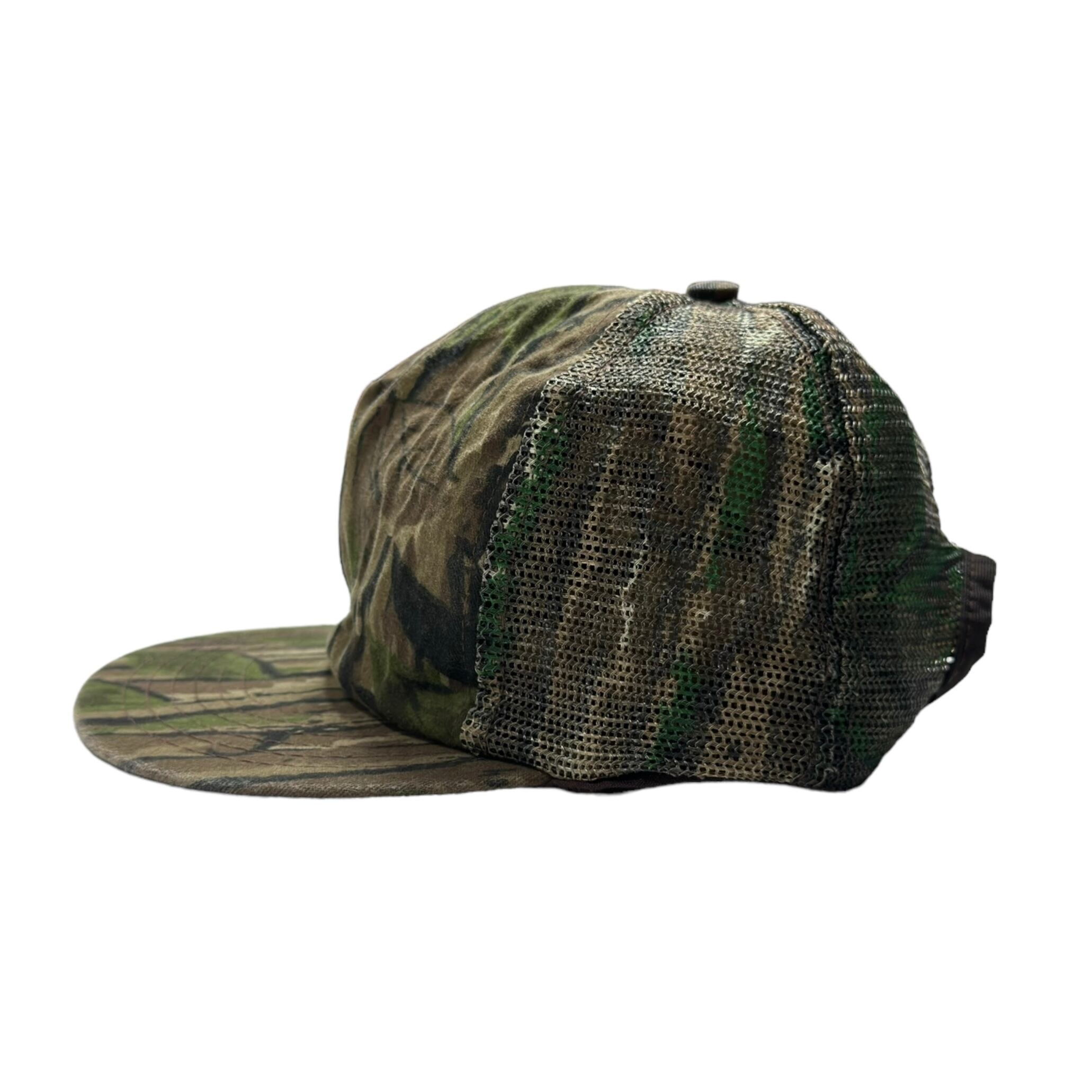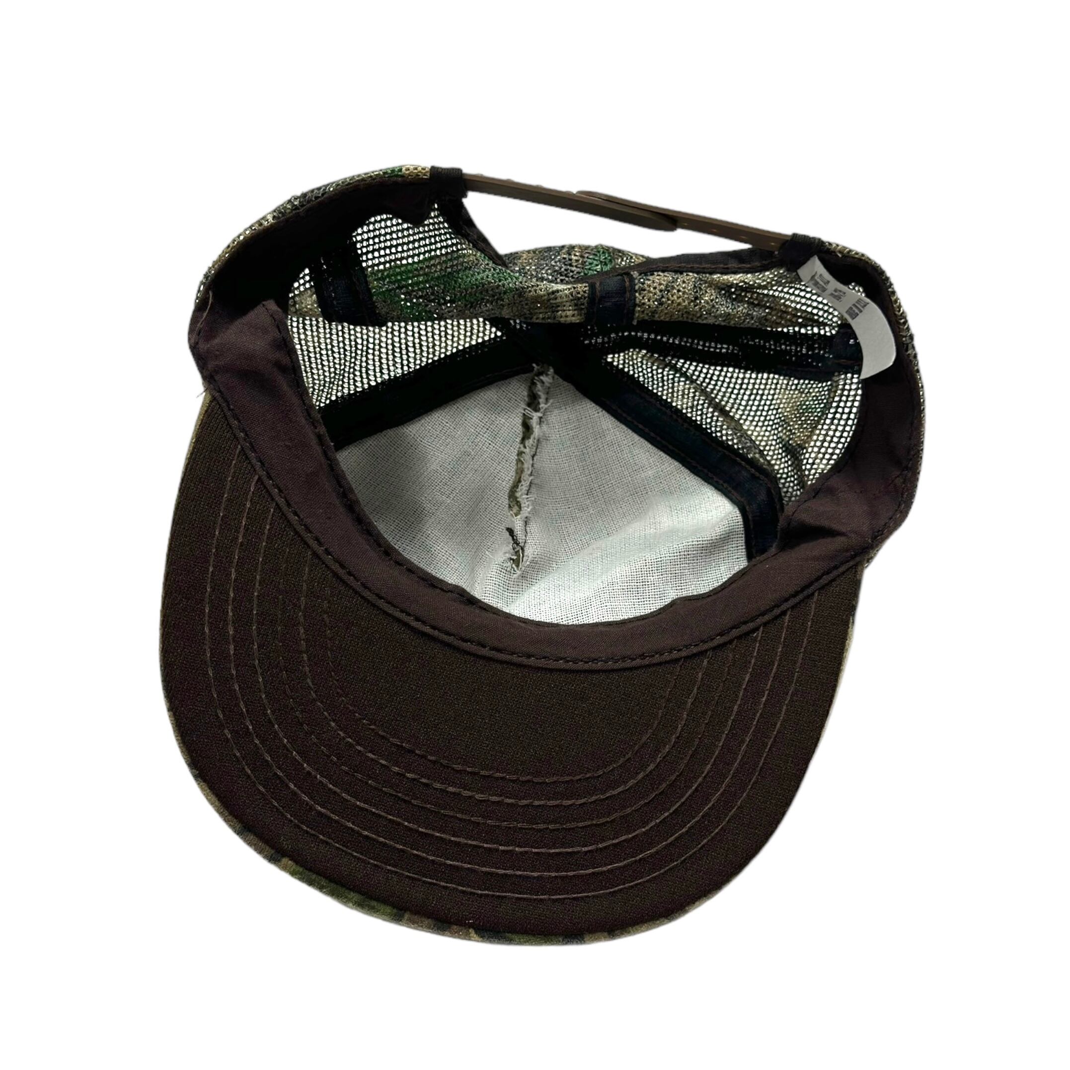 80年代頃のリアルツリーカモ柄のトラッカーキャップ。深めの被り、ブラウンのツバ裏、程良くクタったフロントパネル。最高です。嬉しいアメリカ製。