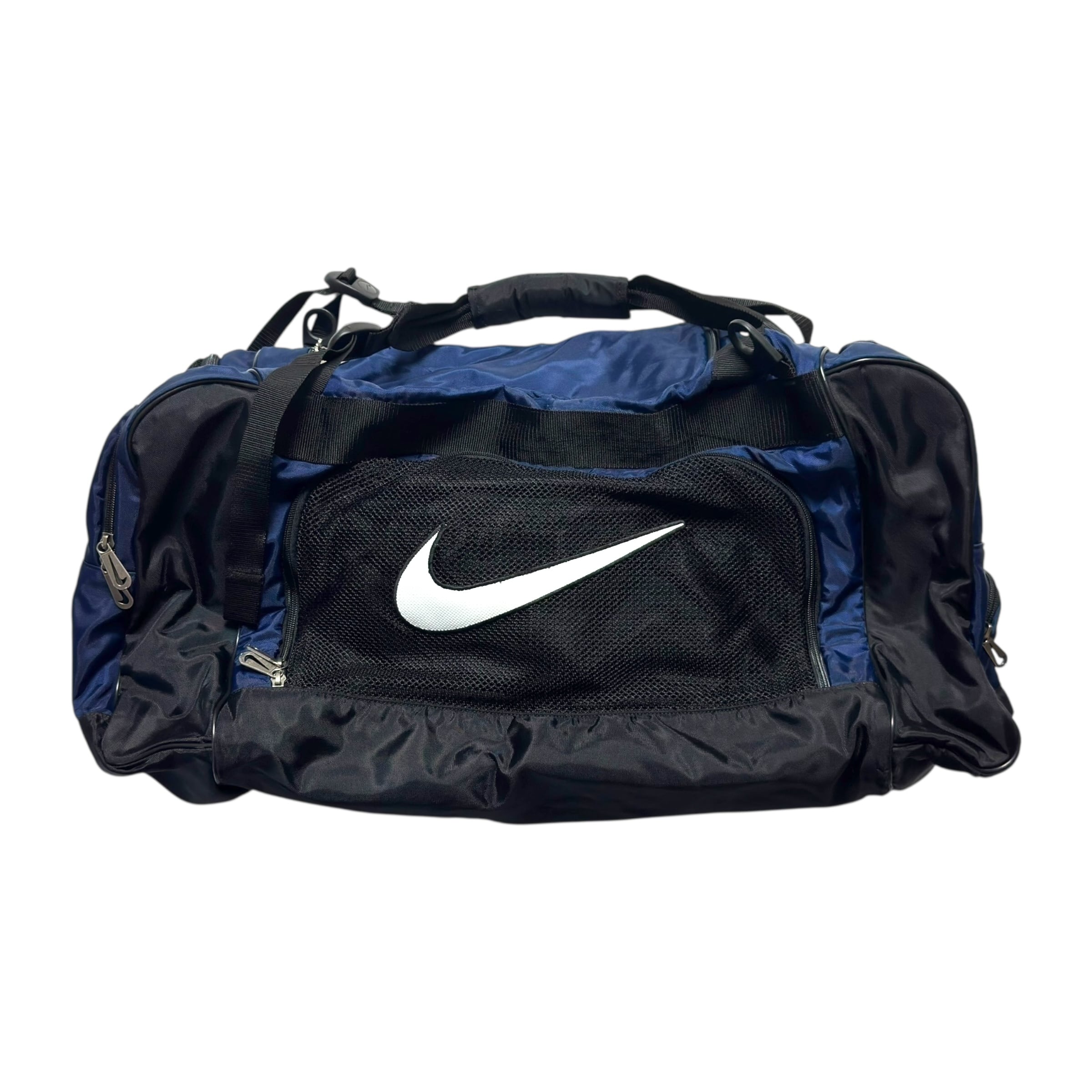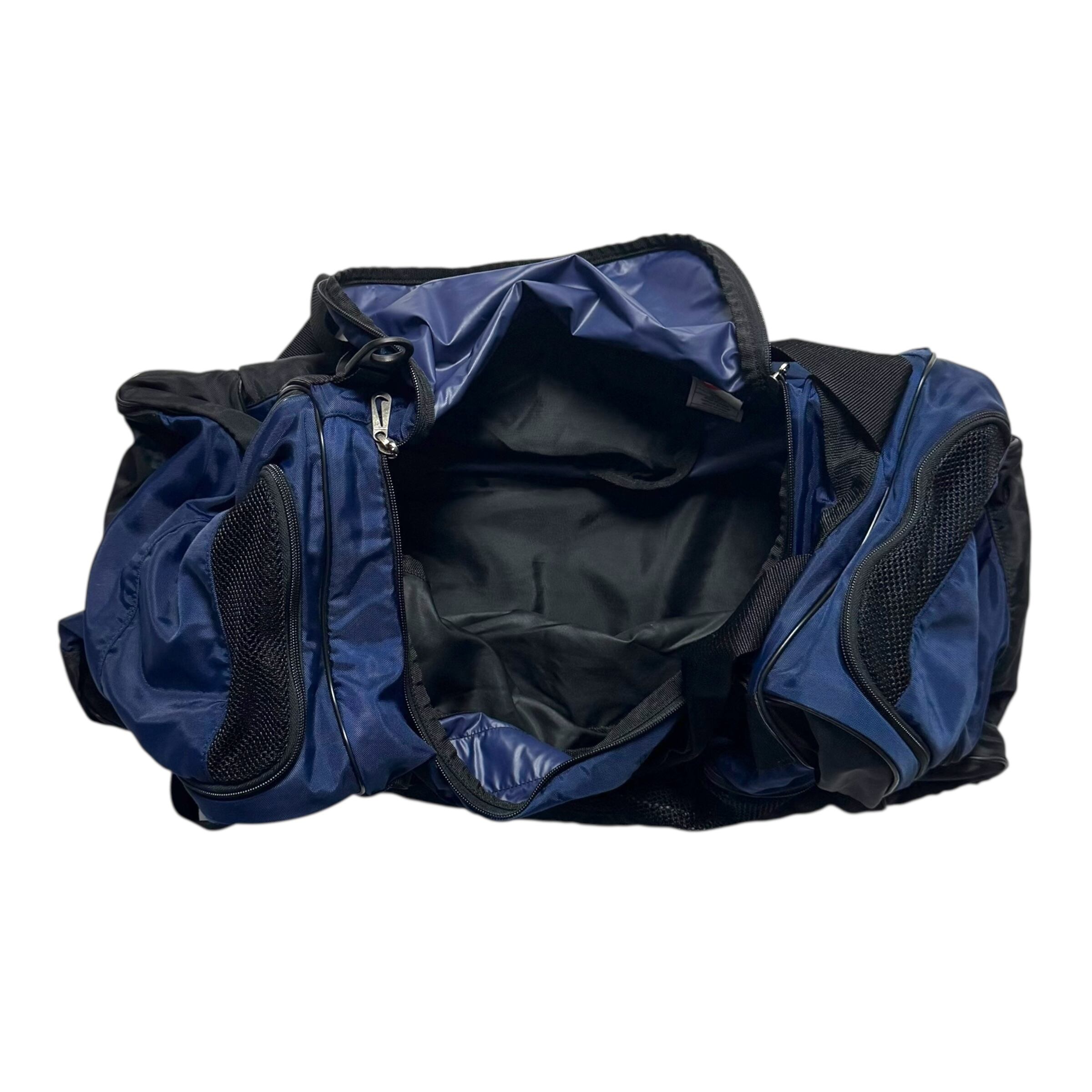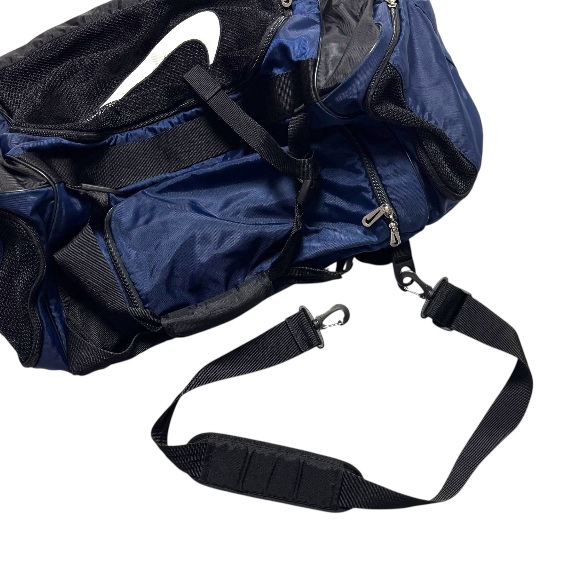ナイキのボストンバッグ。かなり大きめサイズです。ネイビー×ブラック×ホワイトの間違い無い配色、マルチポケット、脱着可能なショルダーストラップ。良いです。大容量のバッグをお探しだった方は是非。