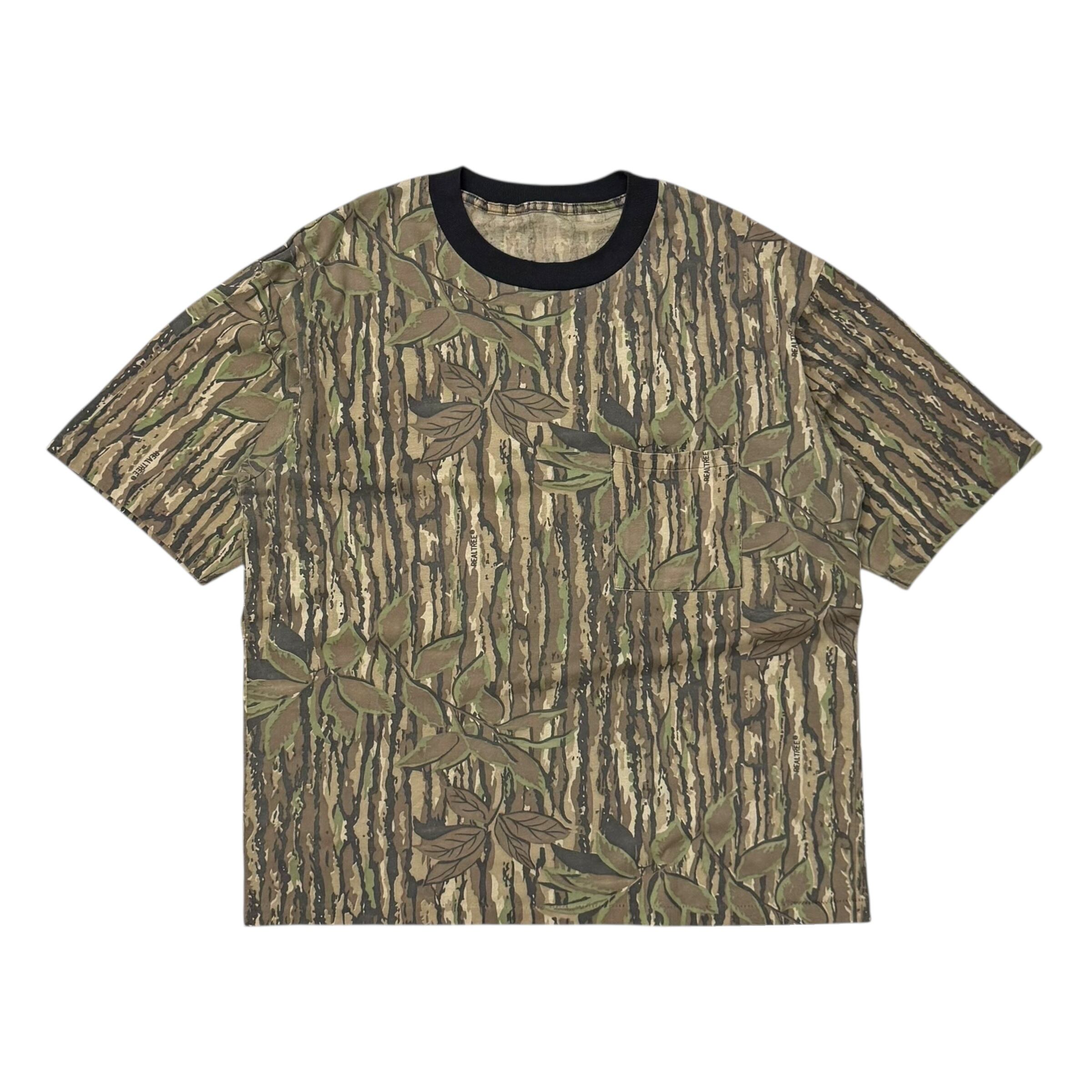 80〜90年代のリアルツリーカモ柄のポケT。暗めのトーン、首元の切り替え、四角いシルエット、袖裾シングル。良いです。1着あると重宝しそうです。