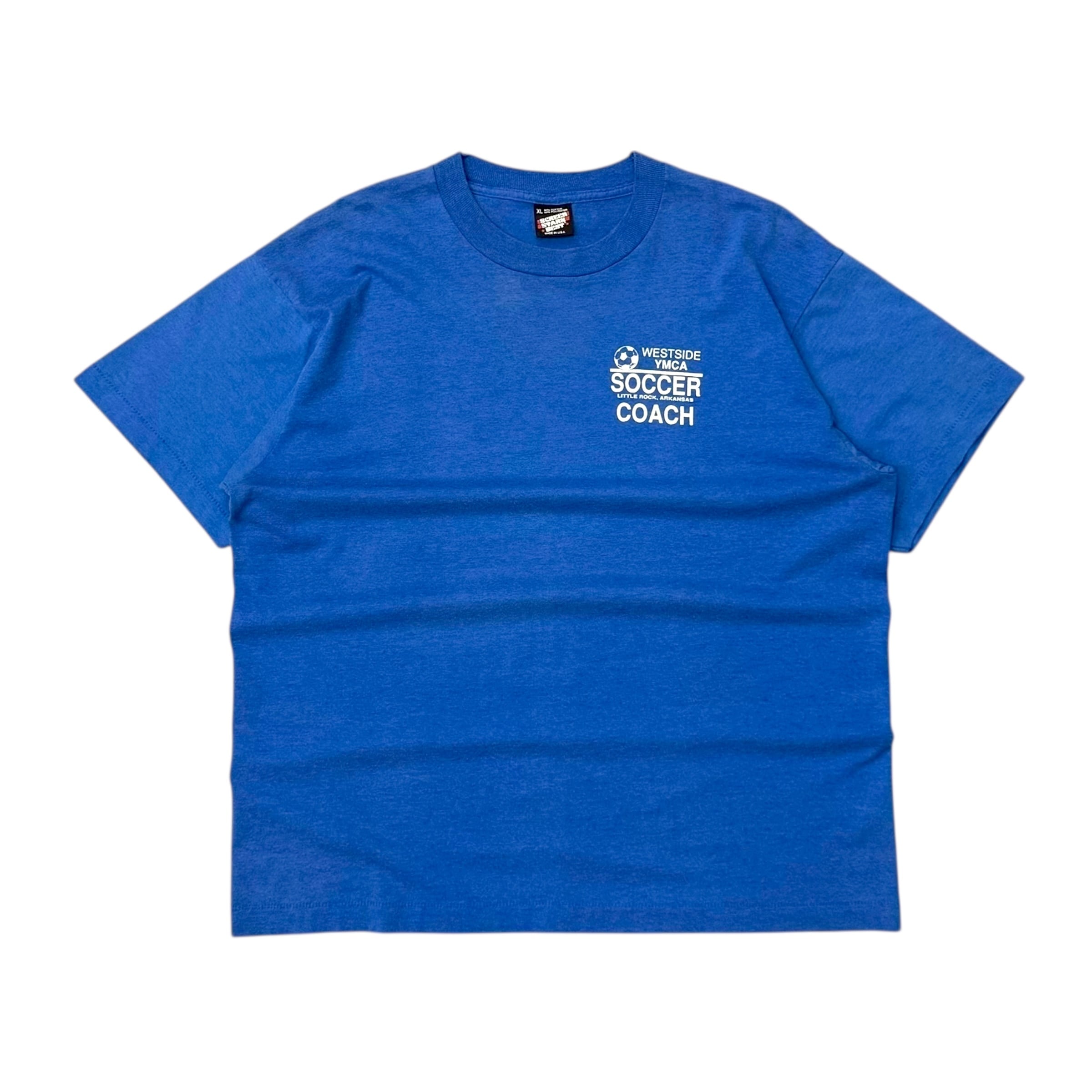 スクリーンスターズのボディを使ったプリントT。YMCAのサッカーチームのコーチに配布されたものかと。サッカーネタがお好きな方は是非。
