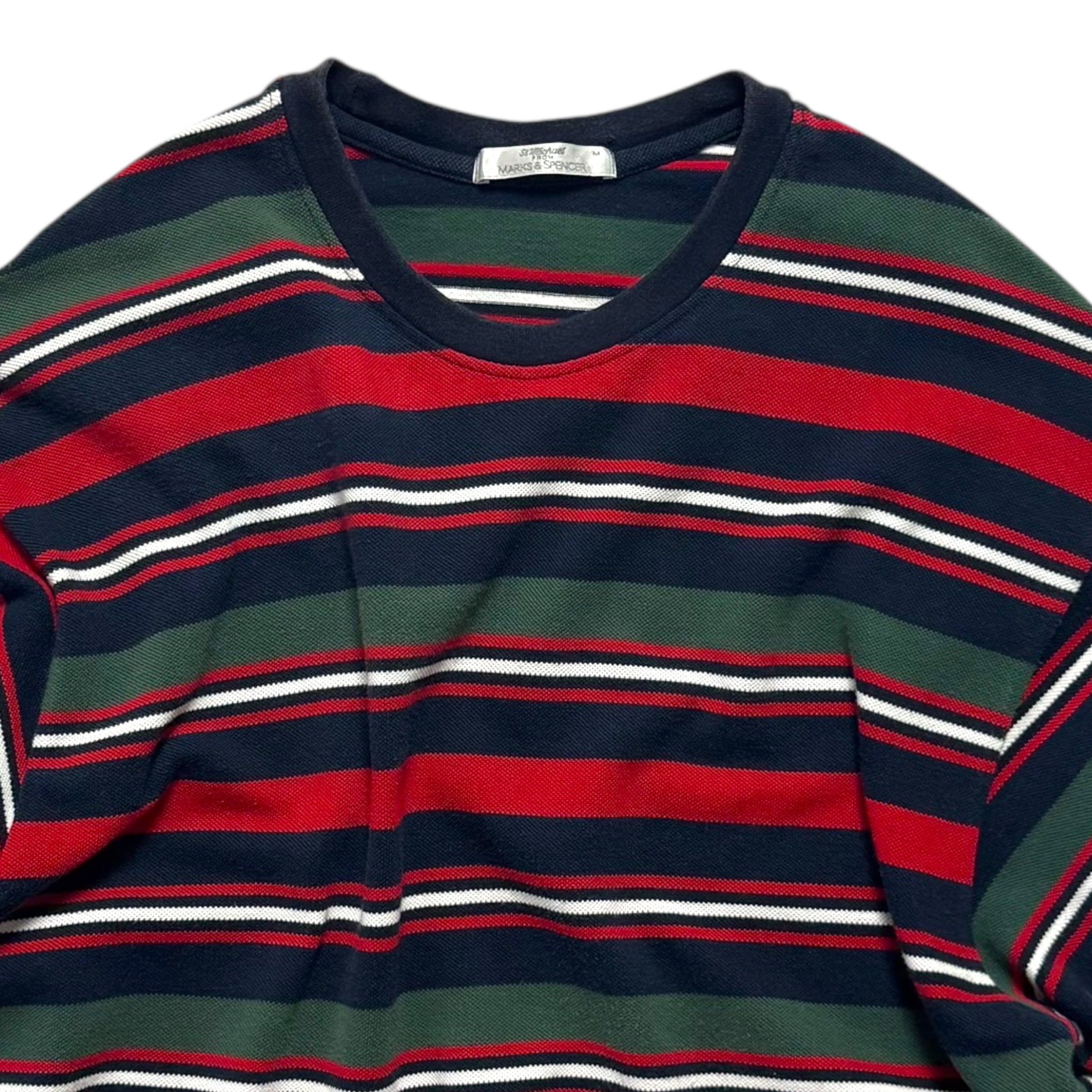 セントマイケル(イギリスの百貨店チェーンのPB)のマルチボーダーTシャツ。良配色、鹿の子編み、裾スリット無し。最高です。