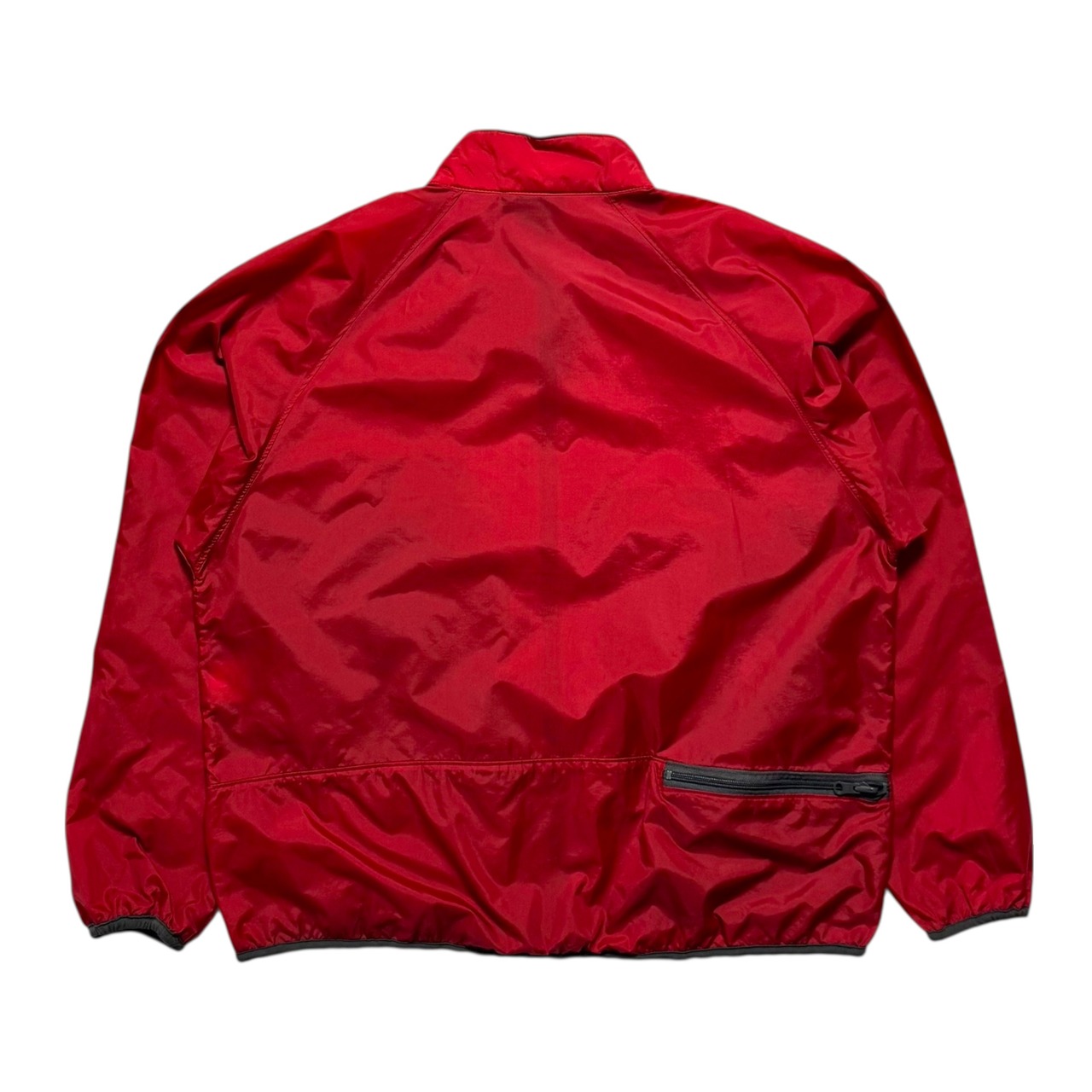 ランズエンドのフルジップのナイロンジャケット。四角いシルエット、ダブルジップ、特徴的な位置のパッカブル用のジップポケット。最高です。一重の生地で、かなり着回しが効くと思います。