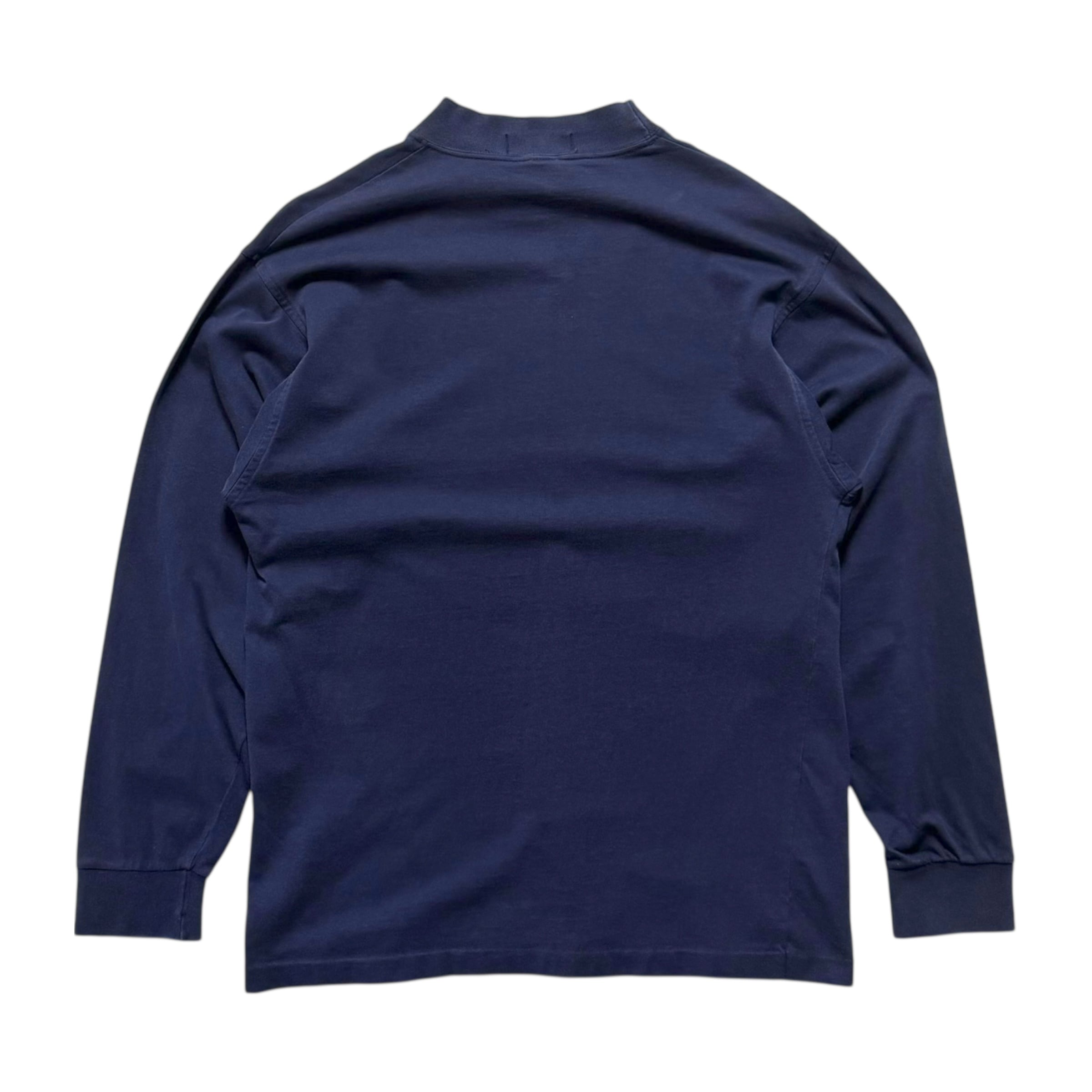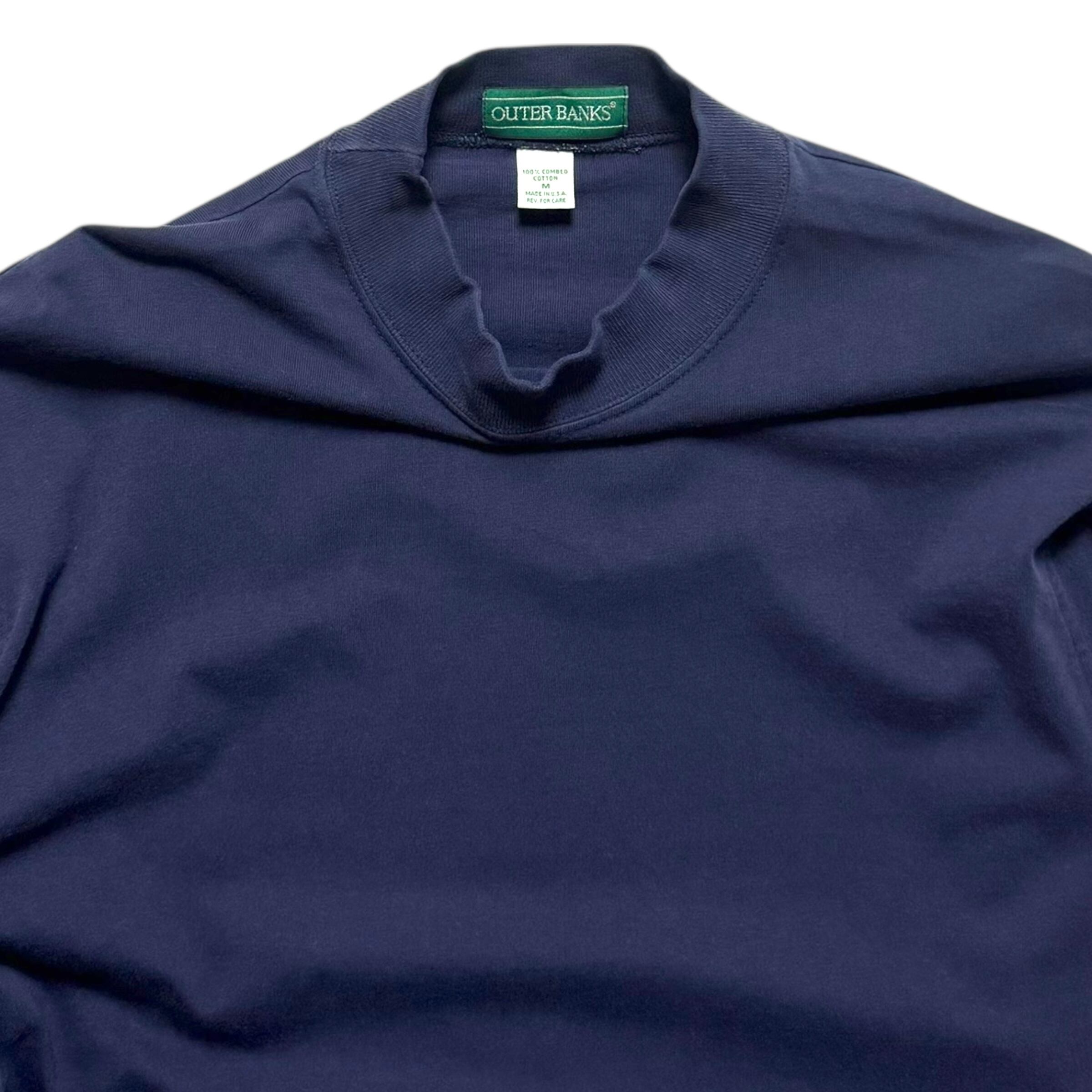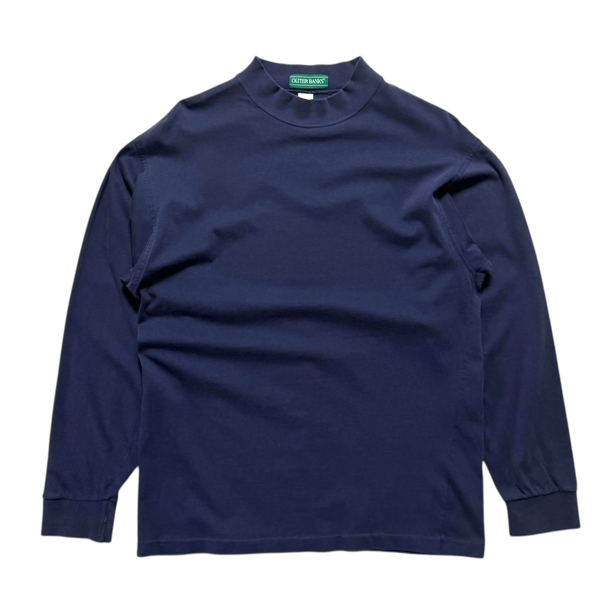 アウターバンクスのモックネックのロンT。伸縮性のある生地のものが多いアイテムですが、こちらはコットン100%のガシッとした生地で、褪せ具合も最高です。私もモックネックのロンTを何着か所有していますが、1枚は勿論、シャツのインナーとしても重宝しています。ややジャスト目のサイズで着用いただきたいです。