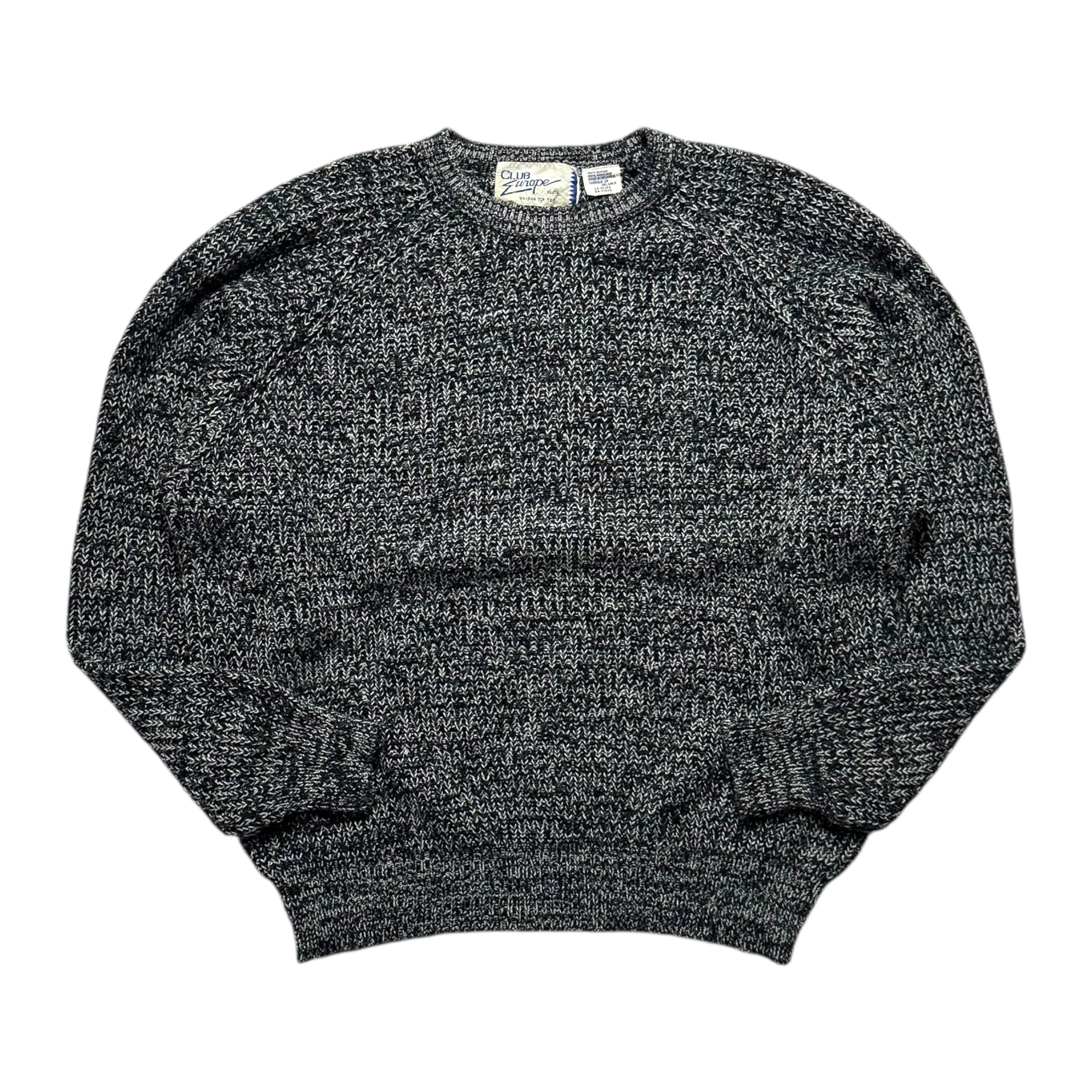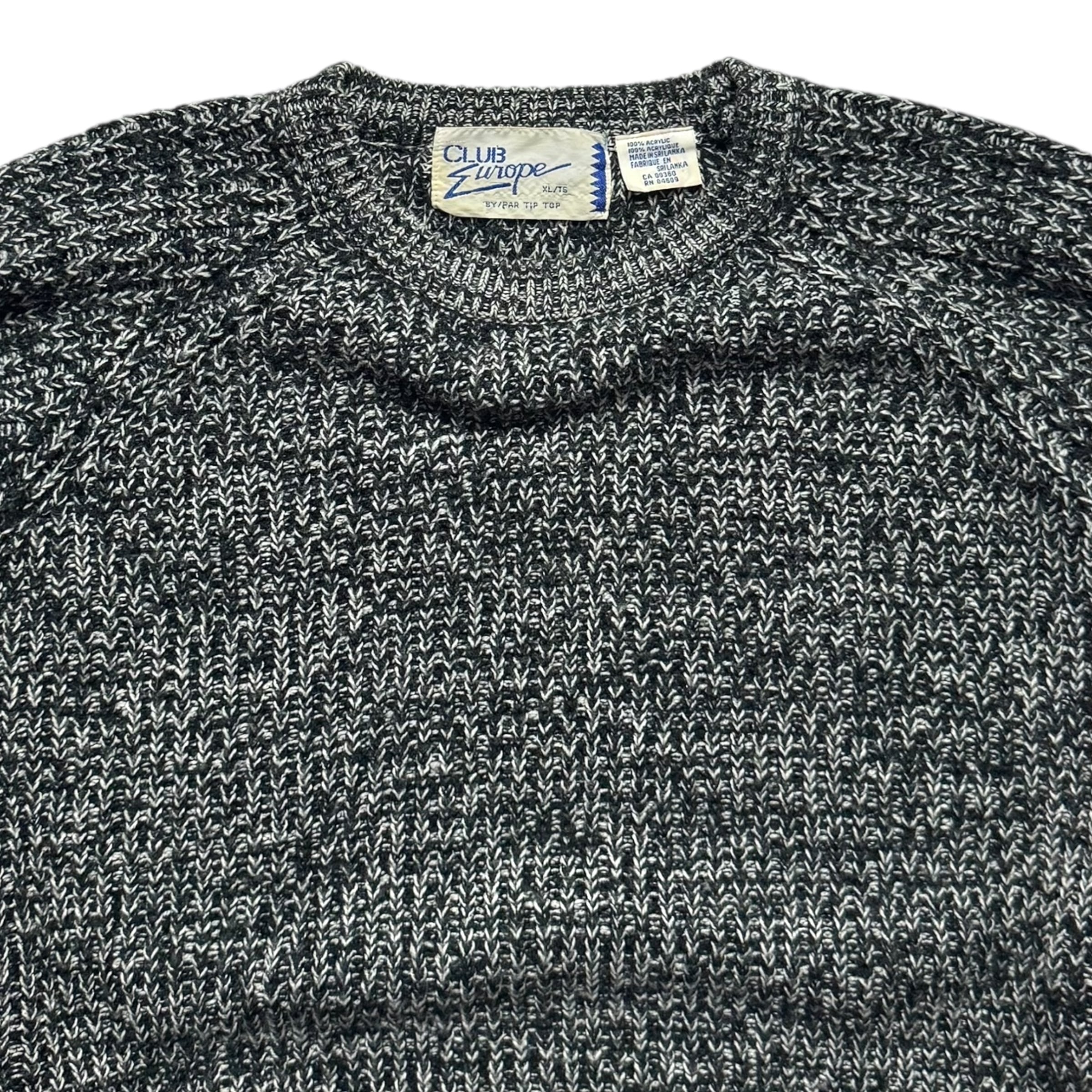 クラブヨーロッパのメランジアクリルニット。使いやすい黒白のメランジで、リブ編み。良いです。タンクトップの上からそのままどうぞ。