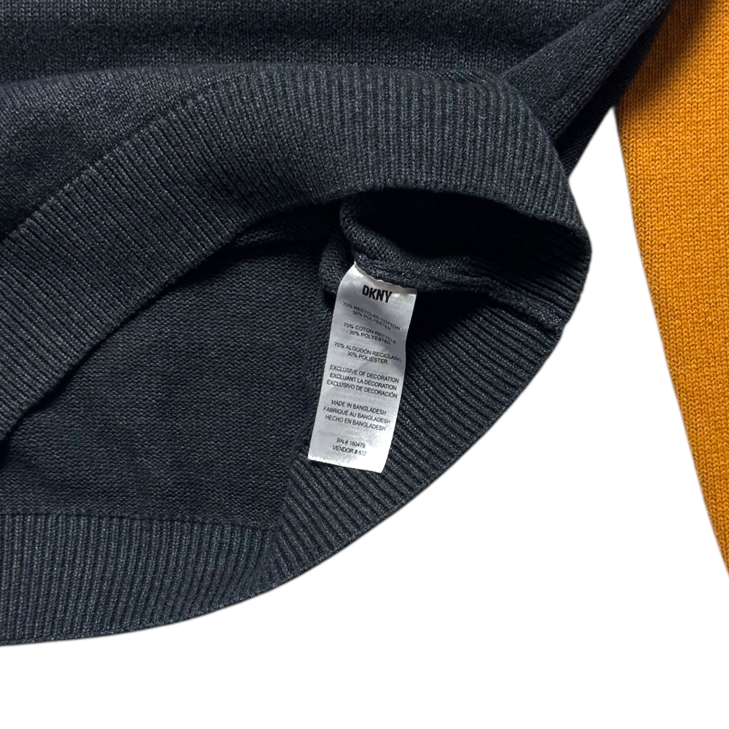 ダナキャランのバイカラーのコットンニット。胸の切り替え、控えめなロゴ刺繍、扱い易いポリ混。良いです。秋冬のお供に是非。