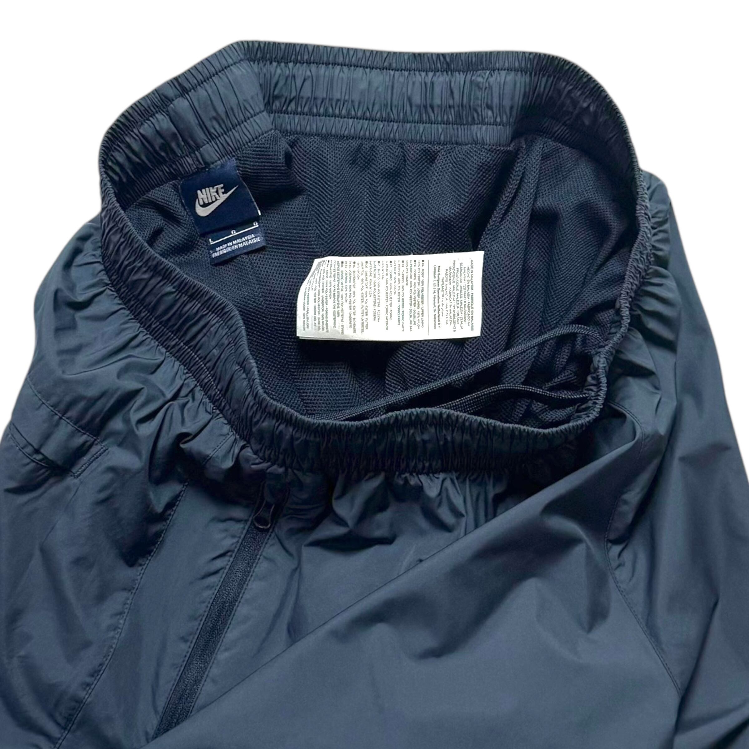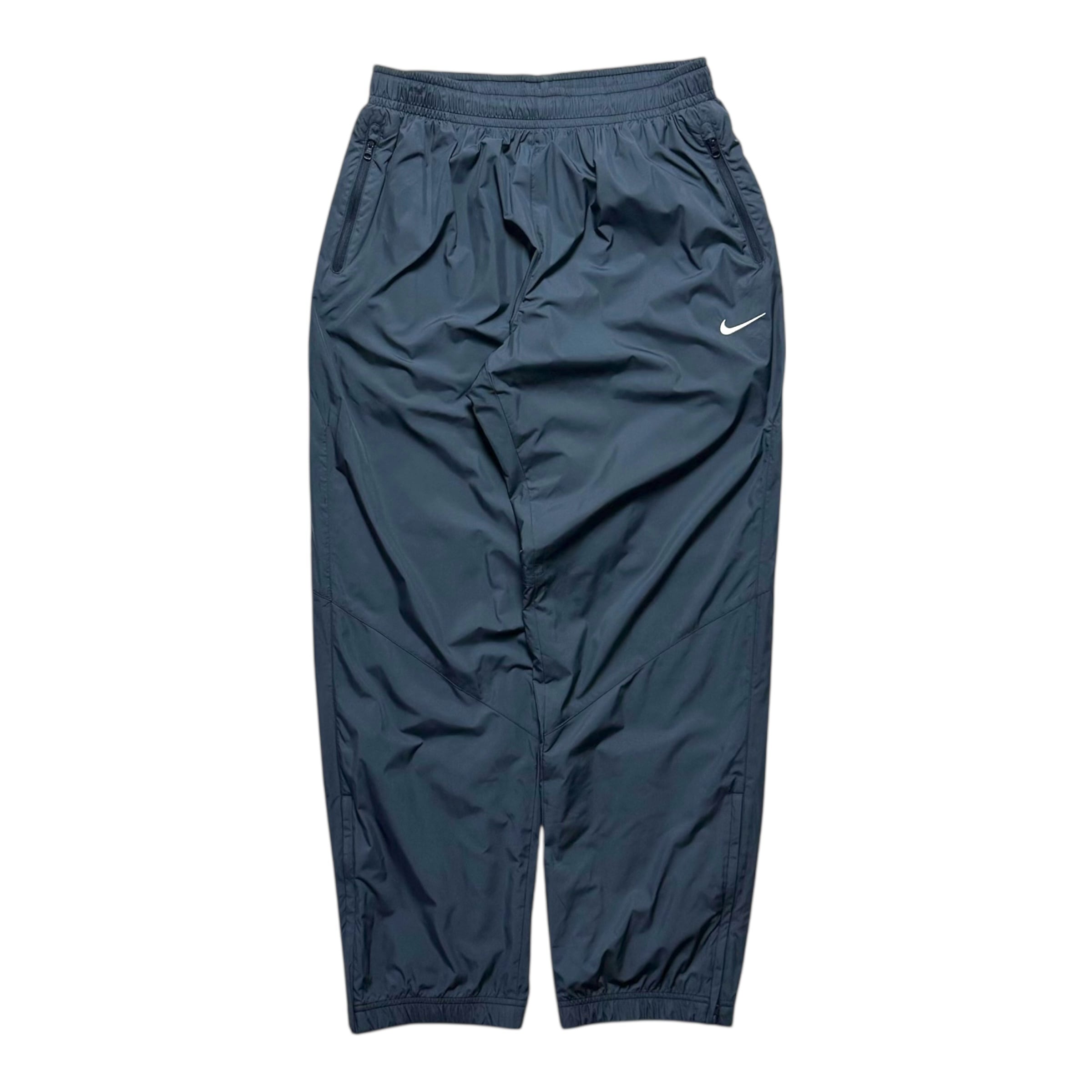 ナイキのポリエステルパンツ。ナイロンパンツと比べ、シャリ感が少なく落ち感が綺麗にでるのが、ポリエステルパンツの特徴かと。裾リブ無しのタイプで、合わせる靴の幅も広いと思います。絶妙な色味が最高です。