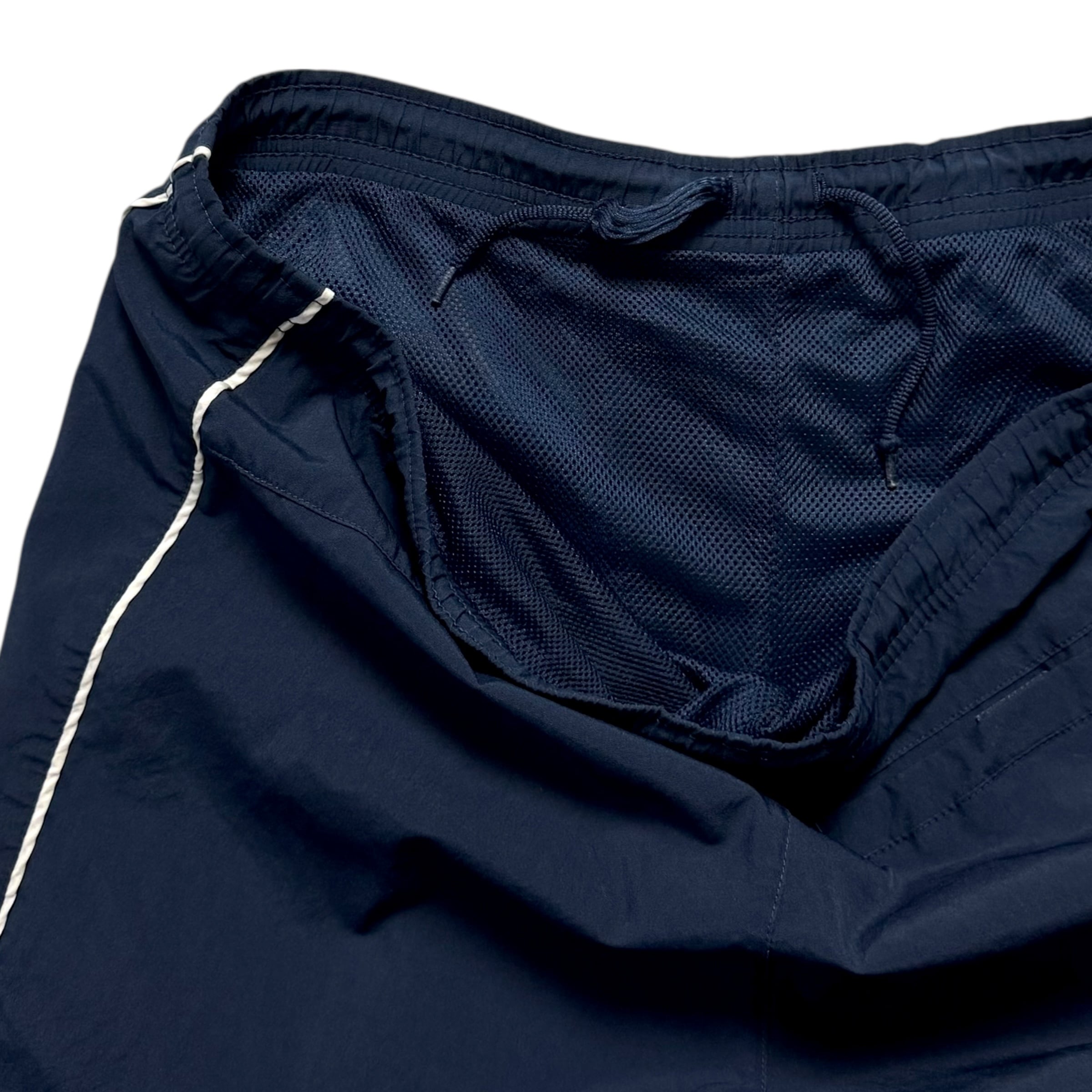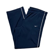 ナイキのポリエステルパンツ。ナイロンパンツと比べ、シャリ感が少なく落ち感が綺麗にでるのが、ポリエステルパンツの特徴かと。裾リブ無しのタイプで、合わせる靴の幅も広いと思います。サイドのラインも良いです。