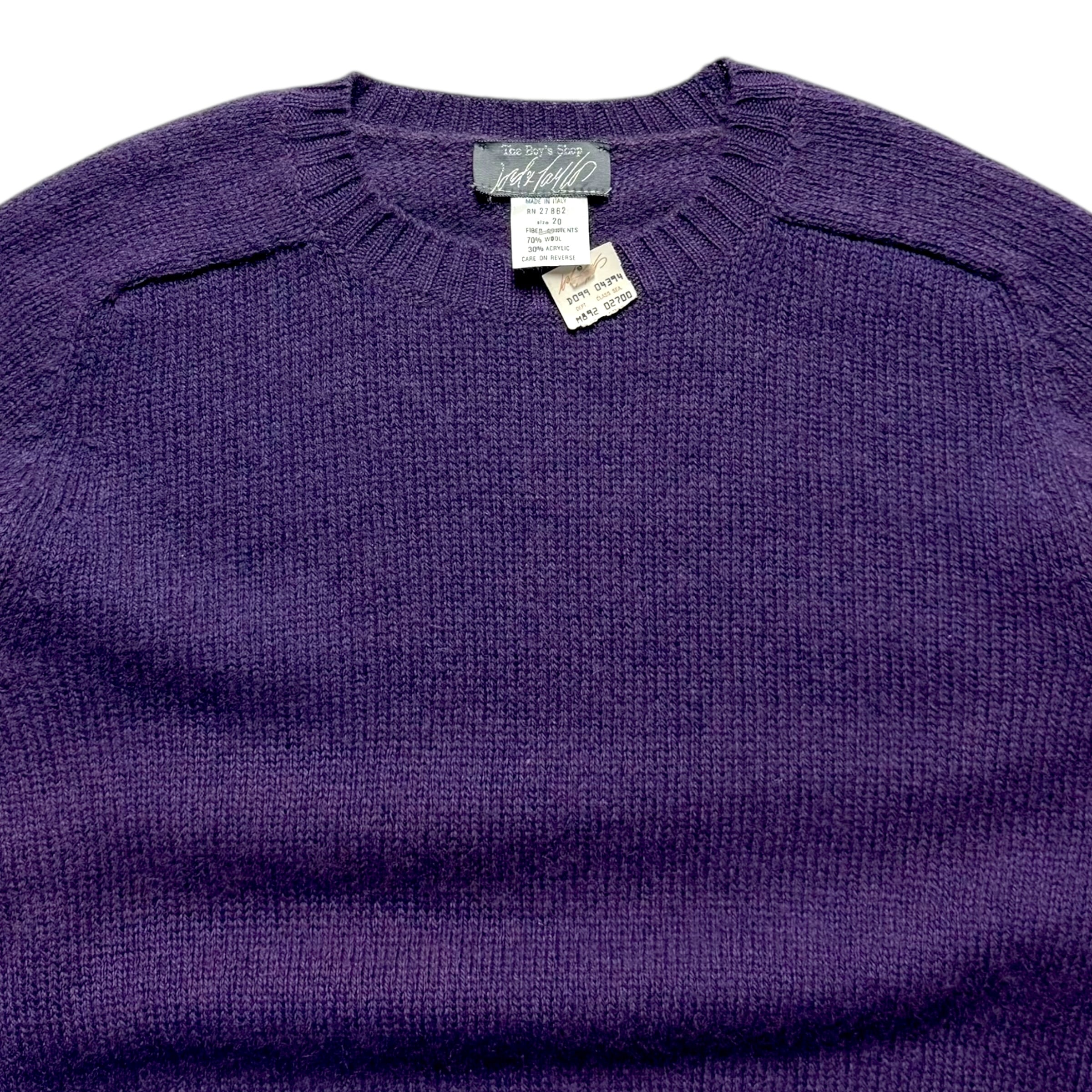 ロードアンドテイラー(アメリカの百貨店)のウールニット。当時の未使用品(新品)です。発色の良いパープル、サドルショルダー、アクリル混、イタリア製。良いです。小さめサイズですので、女性の方も是非。
