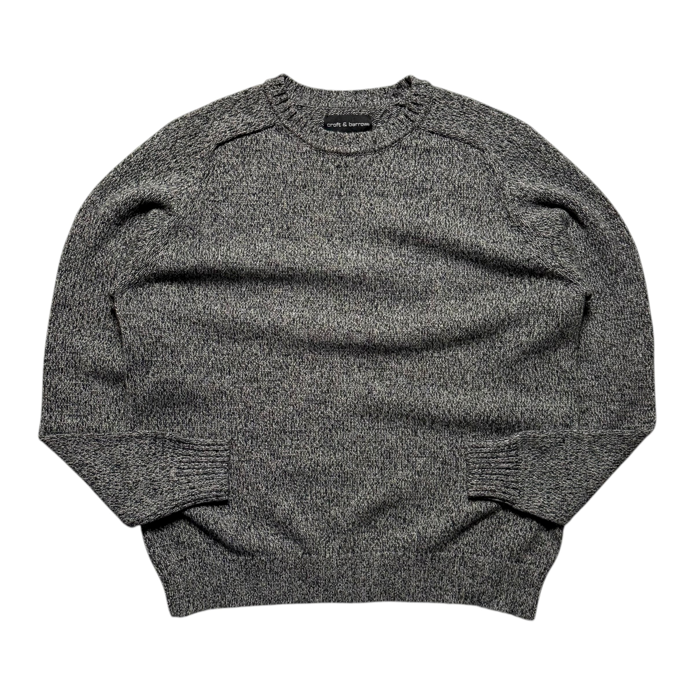 クラフトアンドバローのコットンニット。ガシッとしたコットン生地、メランジ、肩のラインが綺麗に出るサドルショルダー。良いです。色違いで揃えたくなるクオリティです。