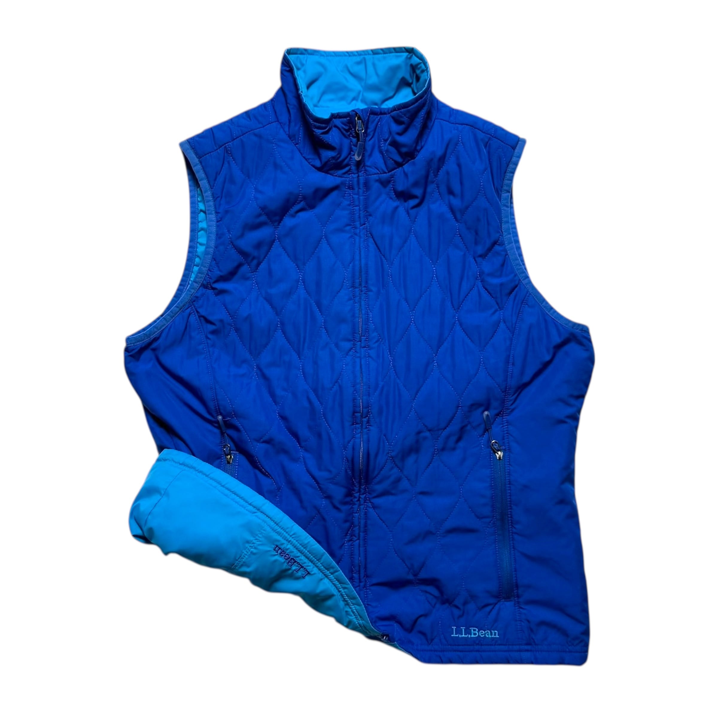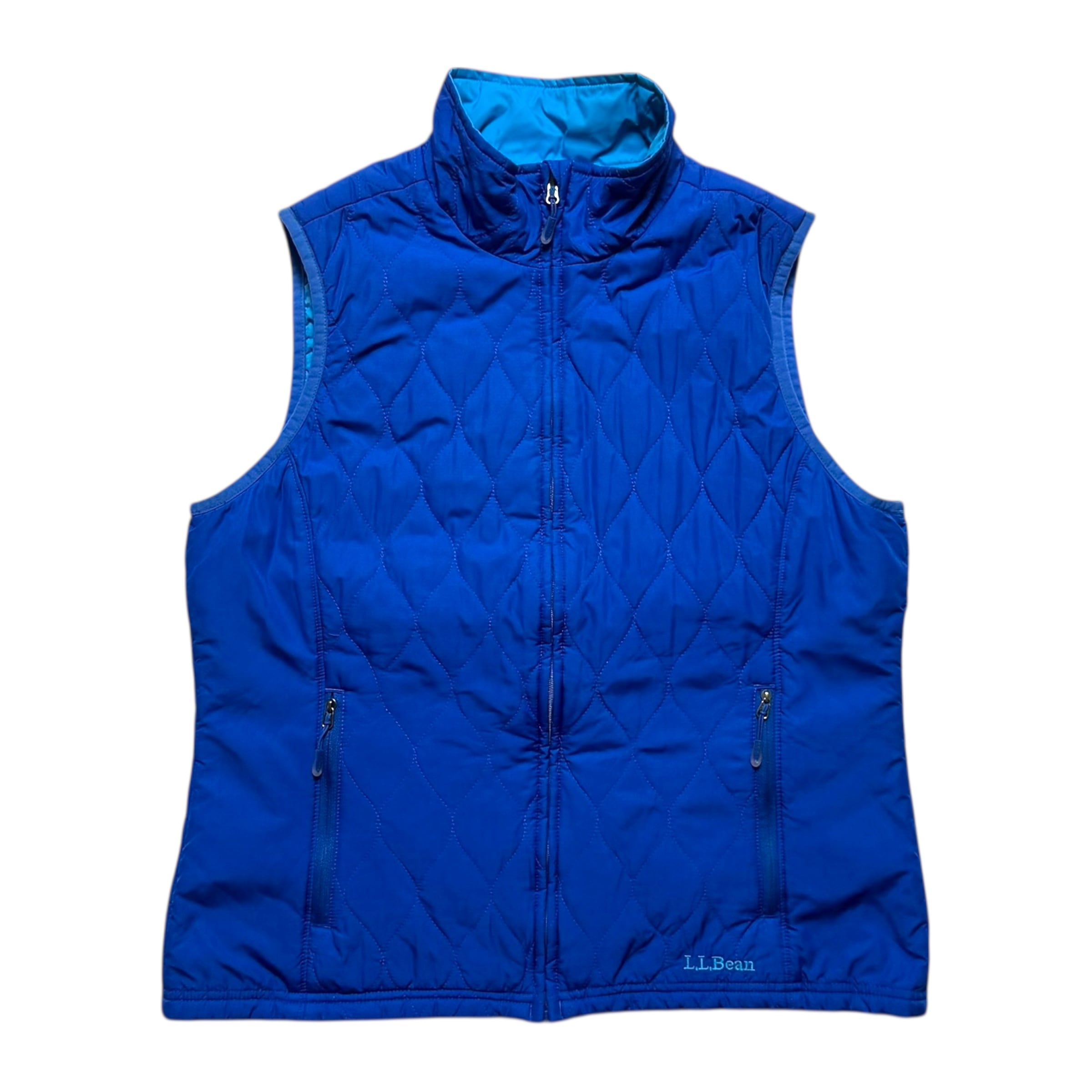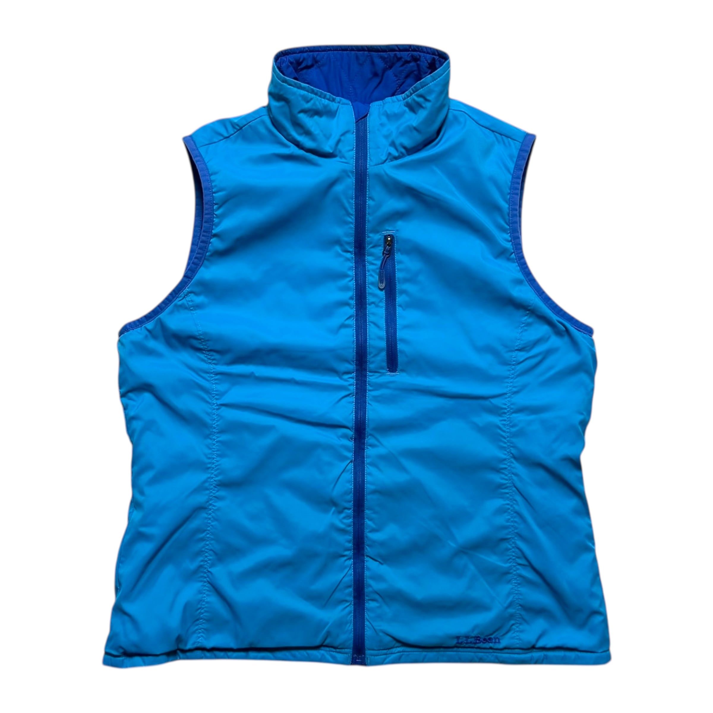 ビーンのリバーシブルの中綿ベスト。ブルー面はキルティング、ライトブルー面はシーム無し。裾のロゴ刺繍も良いです。インナー使いも含め、かなり着回しの効くアイテムかと。