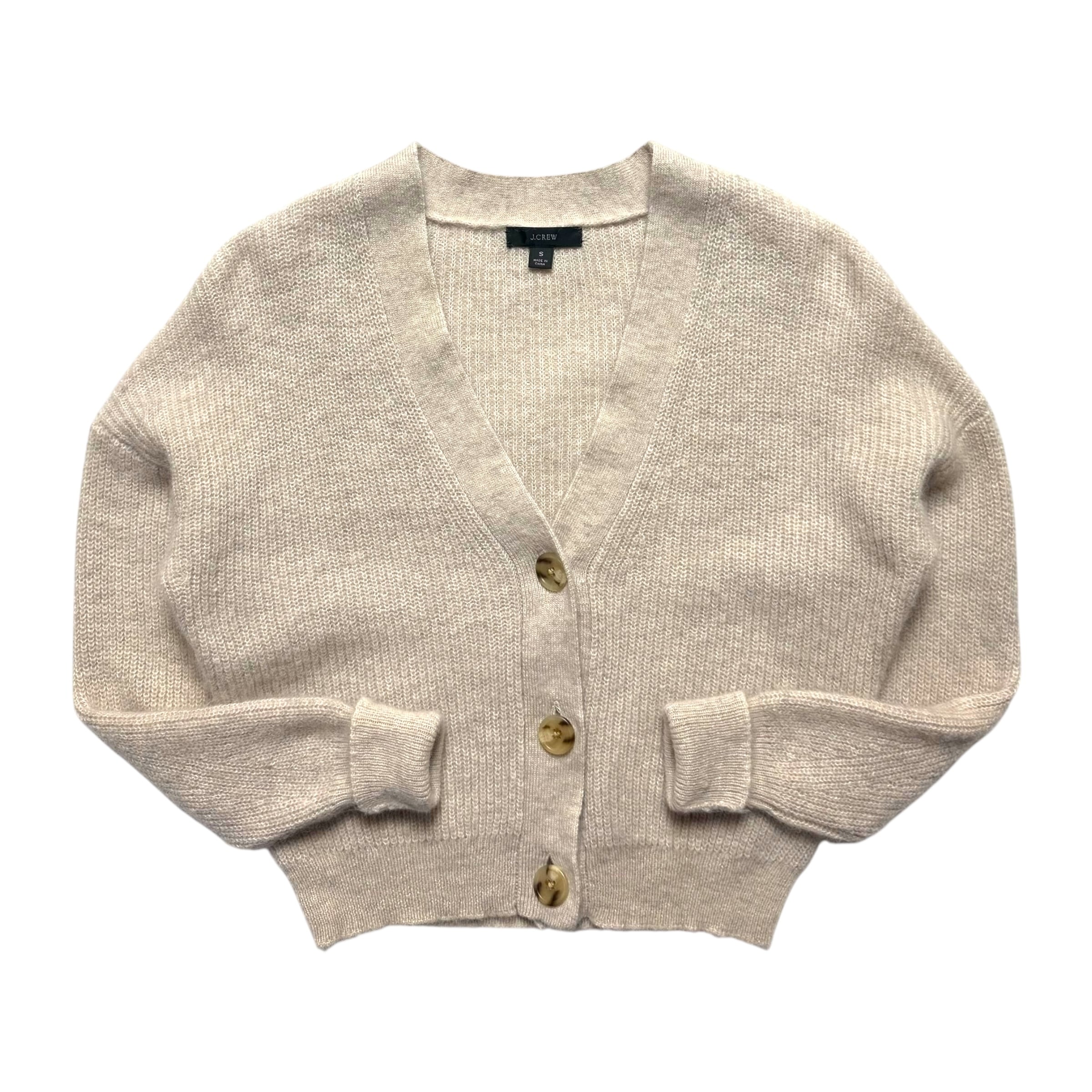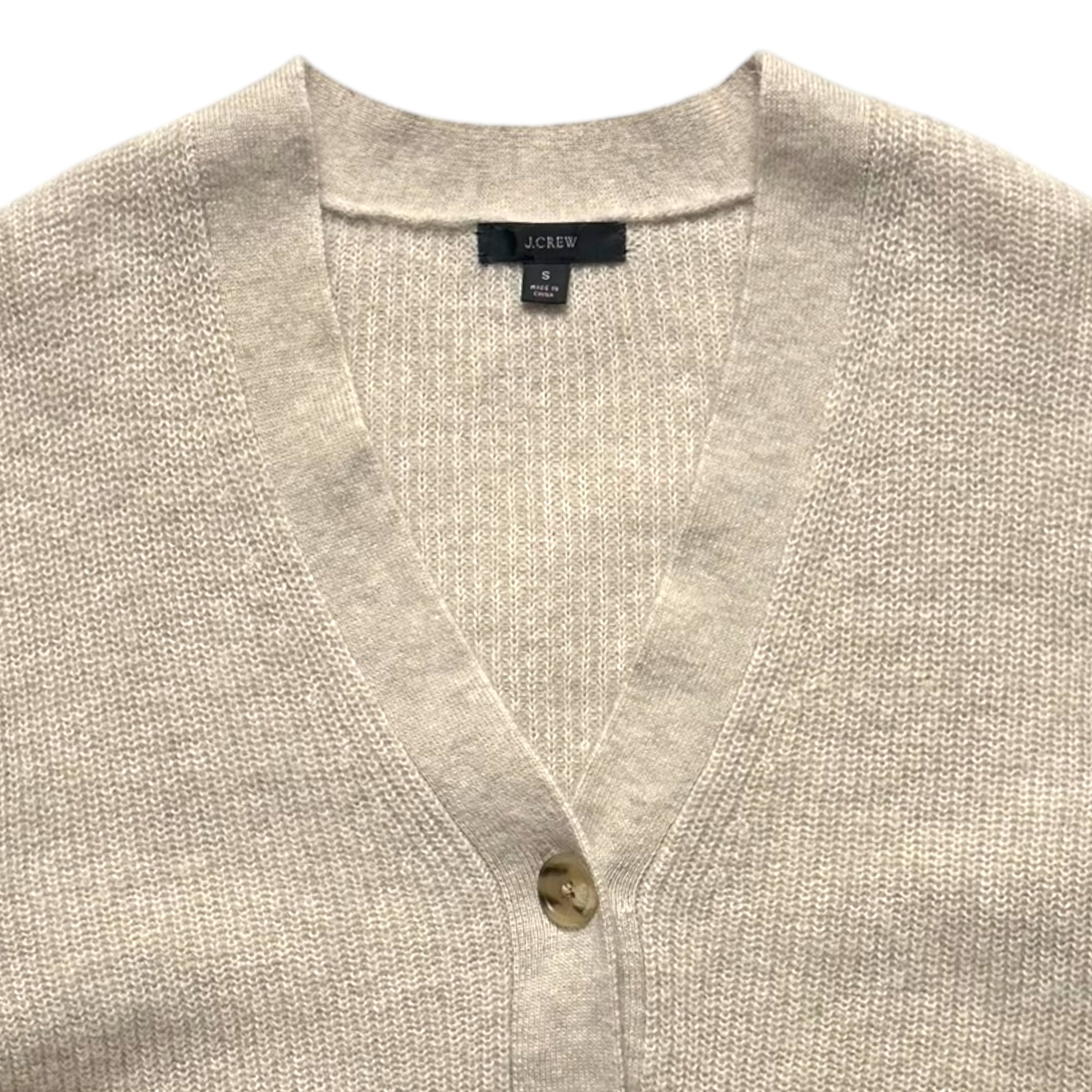 ジェイクルーのアルパカカーディガン。高級素材として知られるアルパカですが、シルクのような肌触り、保温力、耐久力が特徴です。やや袖リブが長めですので、画像のように折り返して着用いただくと着やすいかと。オススメです。