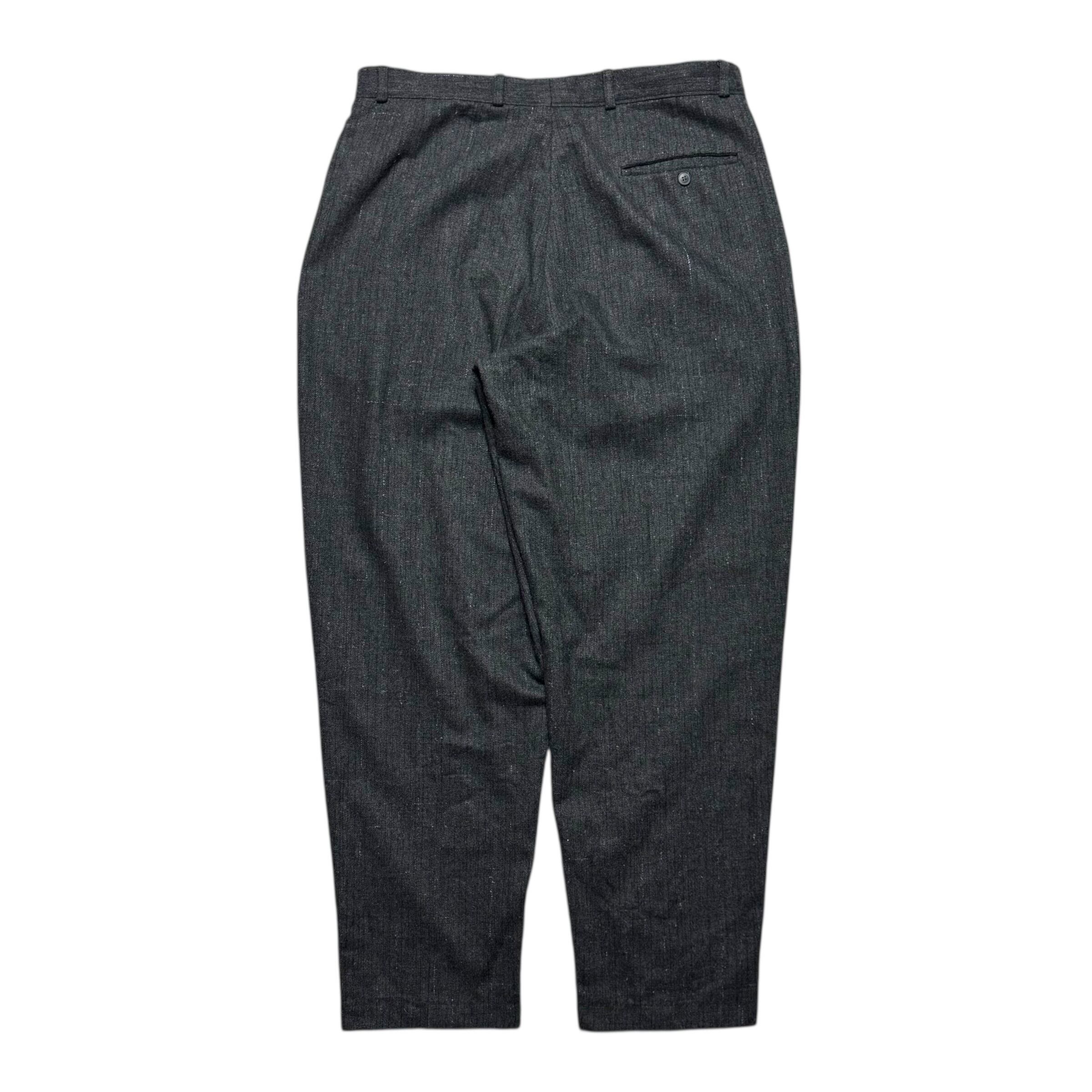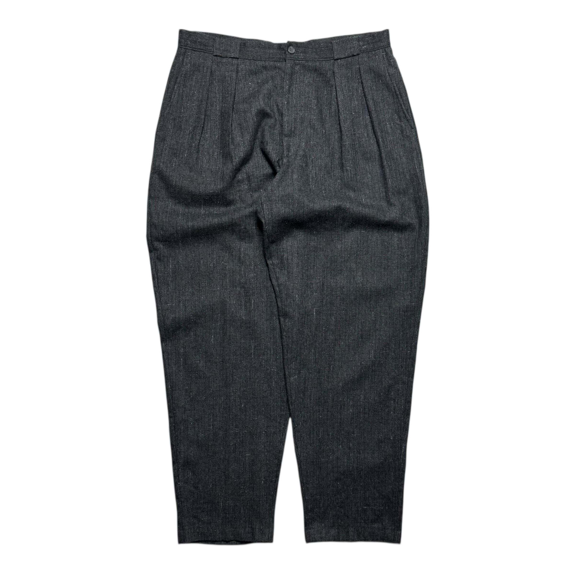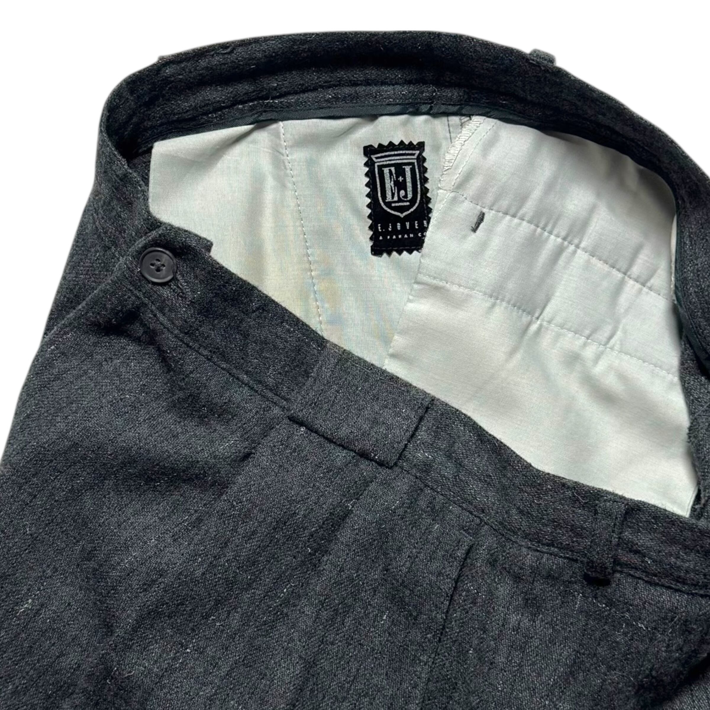 E.JOVENのウールスラックス。白赤のカスリ&黒のチェック、ローテクシューズと相性の良い強めのテーパード、良サイズ。最高です。カスリでチェック。見ない気がします。