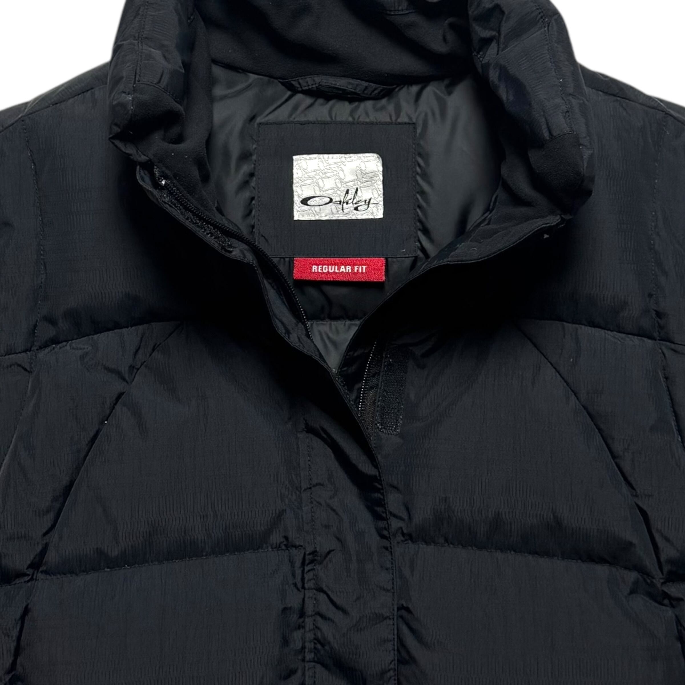 オークリーのダウンベスト。00年代らしいディテールが最高です。表地はよく見ると柄のようになっています(画像3,4枚目)。サイズの合う方は是非。