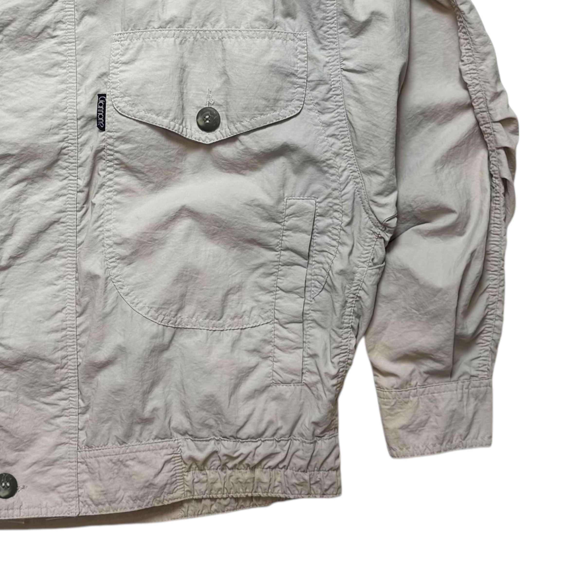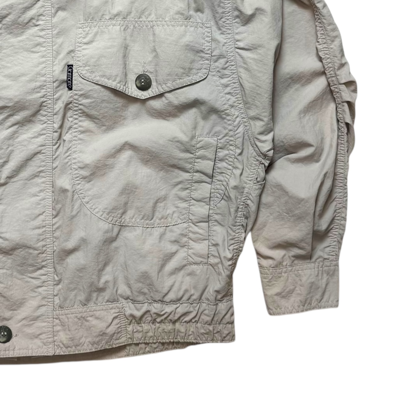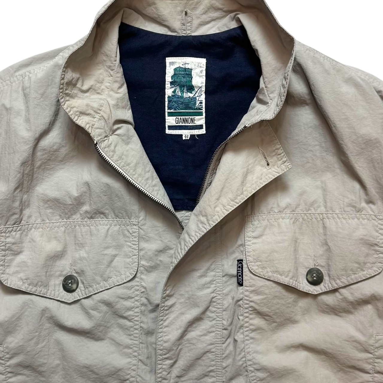 ジャンノーネのデザインジャケット。シャリ感のあるコットン生地、パッチポケットと玉縁ポケットが重なったディテール、立てても寝かしても良しな襟、肘の3段ダーツ。最高です。見ない作りのポルトガルのジャケット。オススメです。
