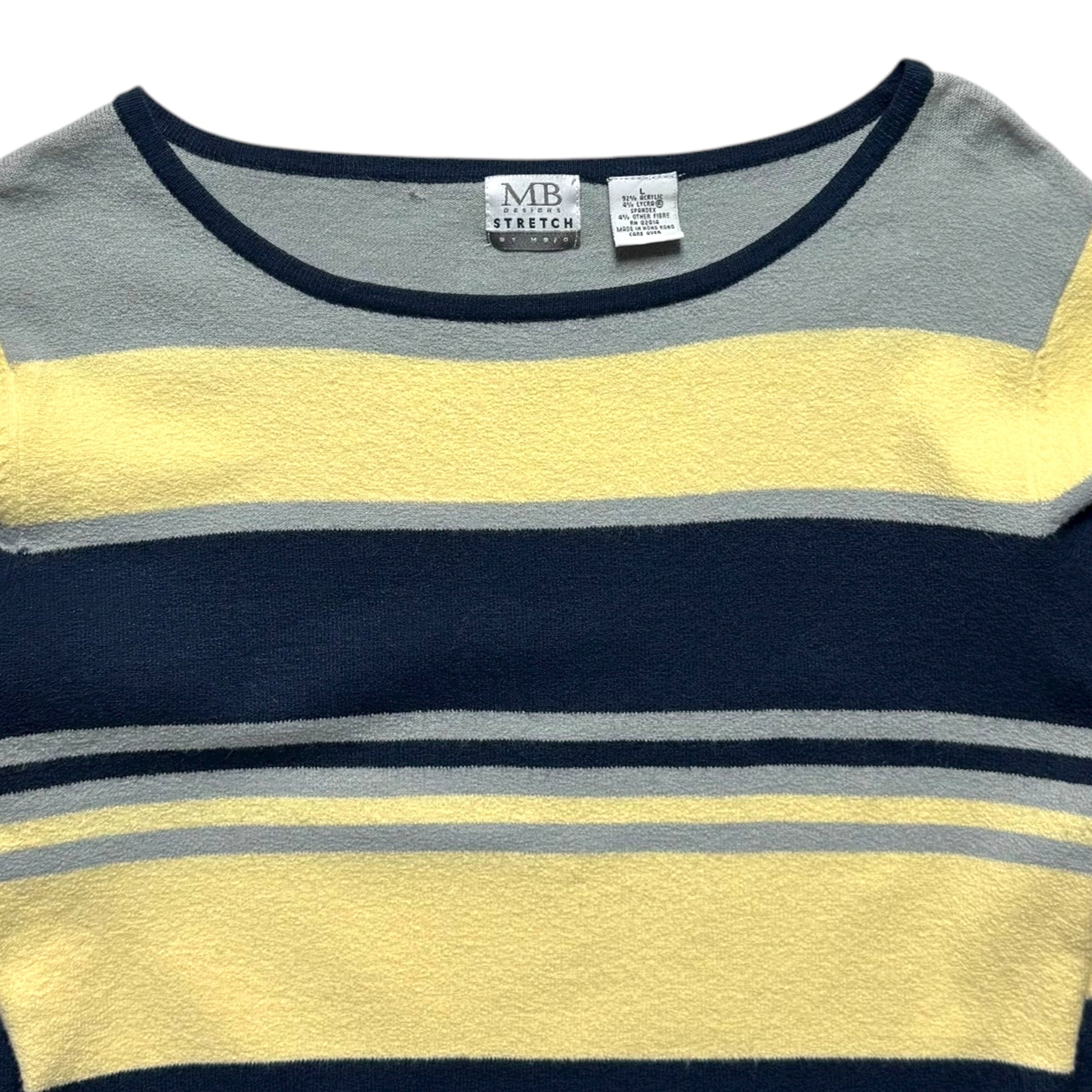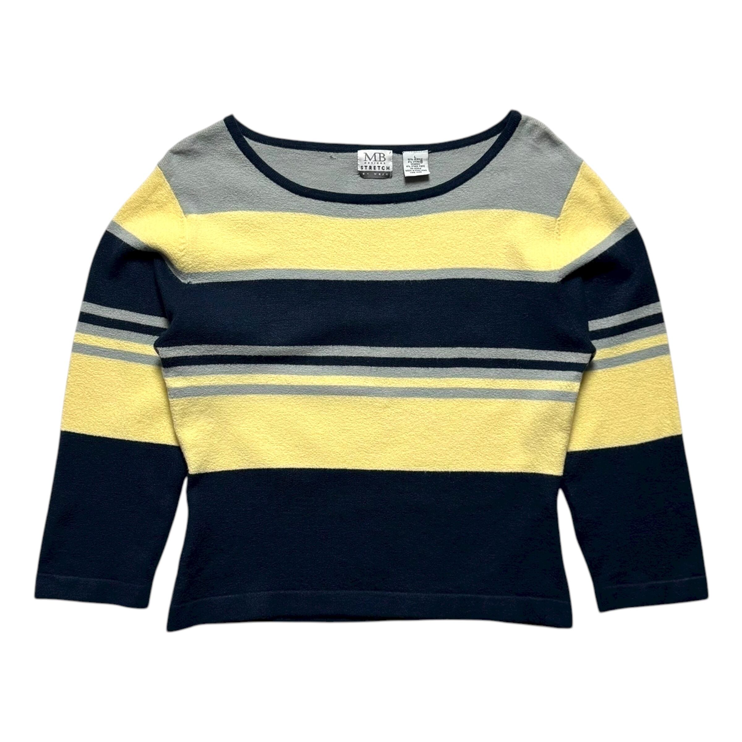 7部袖のマルチボーダーカットソー。ボートネック、伸縮性のあるタオル生地。良いです。春のお供に是非。